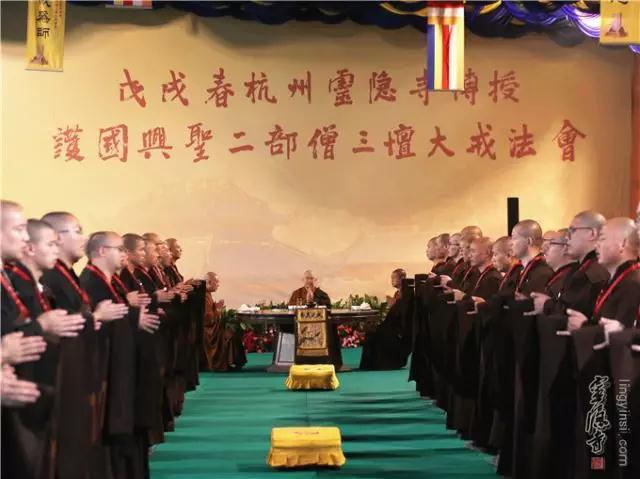编者按:2018年4月23日至5月22日杭州灵隐寺在弘一大师圆具100周年纪念之际,在国家宗教局、中国佛教协会及浙江省、杭州市相关部门的大力支持下,圆满举办传授护国兴圣二部僧三坛大戒法会。三百多位戒子得受清净戒体,喜获中佛协颁发的戒牒。传戒法会期间,坛场清净,律仪齐整。三师七证及诸引礼、纠察师,堪为人天师表。戒场有序管理,正确引导,悉心为佛教界培养荷担如来家业的接班人。为绍隆佛种、续佛慧命做出了贡献,为"东南佛国"再次开创如法戒风。