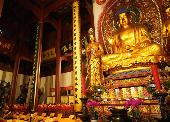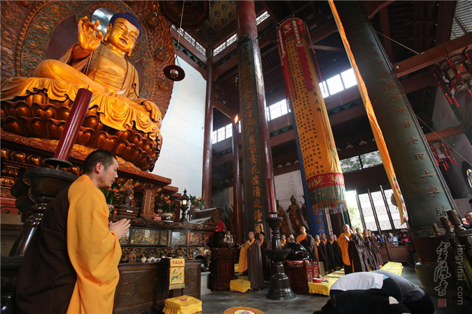 10月27日(农历九月十九)是水陆法会最后一天。上午7:30,药师殿开启水陆大坛吉祥普佛、超荐普佛二场佛事。