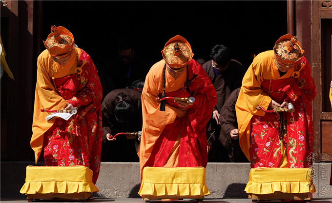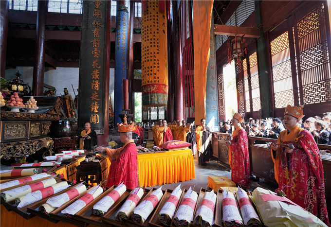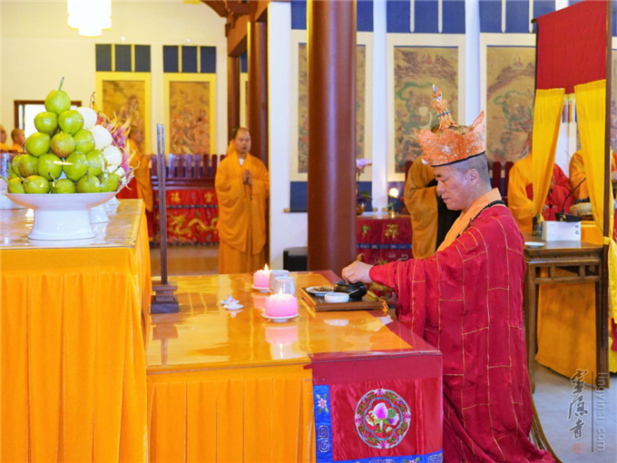 是日,水陆内坛最为庄严繁忙。上午7:30开始,内坛依律举行圆满供、圆满香、送判宣疏、送圣等佛事。