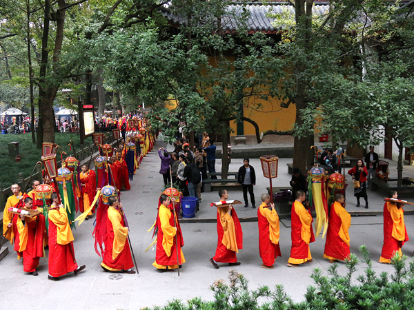 次日朝罢,与众僧议设水陆大斋,又造梁皇宝忏。说这水陆大斋者,犹中国言普食也,盖为无主饿鬼而设也。梁皇忏者,梁武帝所造,专为郗后忏悔恶业,兼为众生解释其罪。