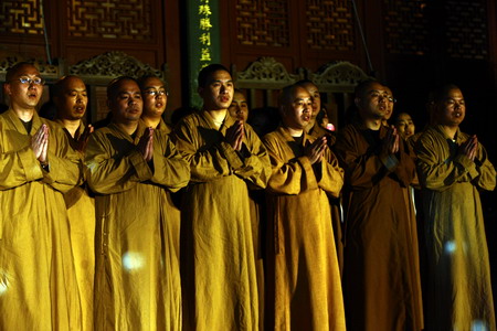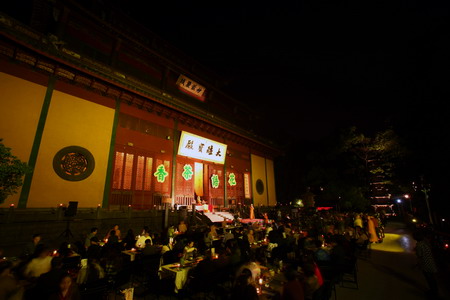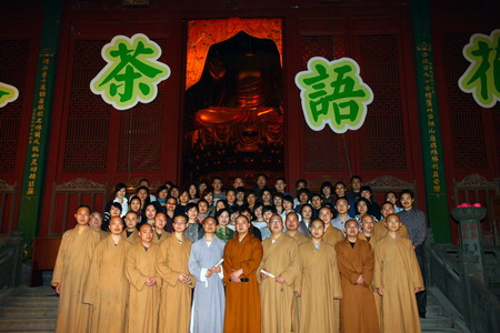 此次茶会,以"花语茶香"为主题,主要品评对象为"龙井茶(法净禅茶)"、"铁观音"、"武夷岩茶",活动安排在晚间大雄宝殿前举行(第一天晚上由于下雨的缘故,而临时决定改在法堂进行)。