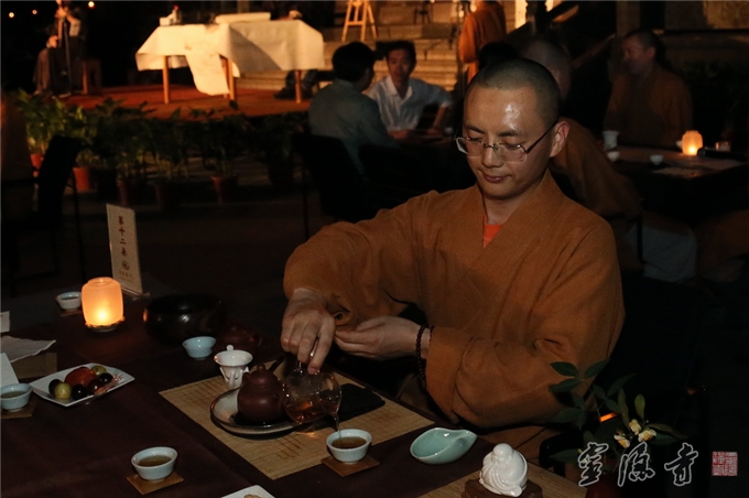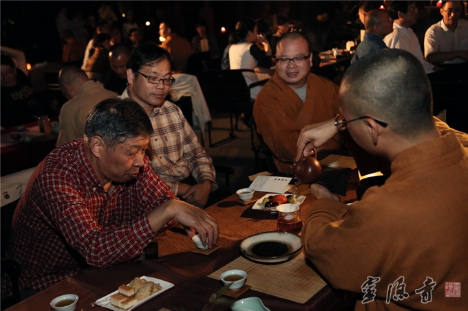 偷得浮生片刻闲,且把禅茶就墨香。此次以"翰墨茶韵"为主题的云林茶会,大众共同品味三种茶,清新怡人的开化龙顶,香气馥郁的铁观音,醇厚怡人的武夷岩茶。连续两晚温馨举行的云林茶会上,人们置身在茶韵缭绕的古乐书墨馨香之后,近距离地亲近法师,聆听佛法,感悟生命的真谛,禅意之悠长。