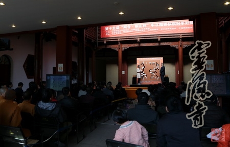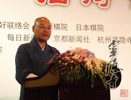 在前日晚上举行的"第十五届‘阿含·桐山杯’中日围棋快棋冠军对抗赛"招待宴会上,我寺方丈光泉大和尚发表了热情洋溢的讲话,欢迎各位围棋界的大善知识来到杭州灵隐寺参加此次比赛的最后中日对决,他向大家介绍了杭州和灵隐寺的围棋文化历史,以及近年来灵隐寺成立围棋文化交流中心发展佛教围棋文化的情况,并预祝两国选手在灵隐寺这座"无为堂上"取得圆满的成绩。