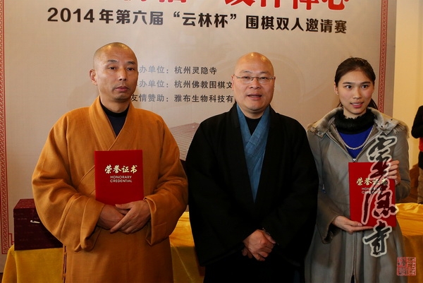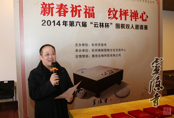 2014年2月22日(农历正月廿三日),由杭州灵隐寺主办、杭州围棋文化交流中心承办、雅布生物科技有限公司友情赞助的"新春祈福 文枰禅心-2014第六届‘云林杯’围棋双人赛"在在暖暖的春意和阵阵的梅香中继续开战。灵隐寺围棋交流中心的法师和王汝南、曹大元、陈临新、刘世振、陆军、杭天鹏、毛昱衡、张越然等职业棋手以及来自各界的业余棋手等同台对弈、切磋棋艺。