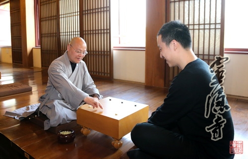 交流会后,灵隐寺方丈光泉大和尚和著名棋手古力对弈