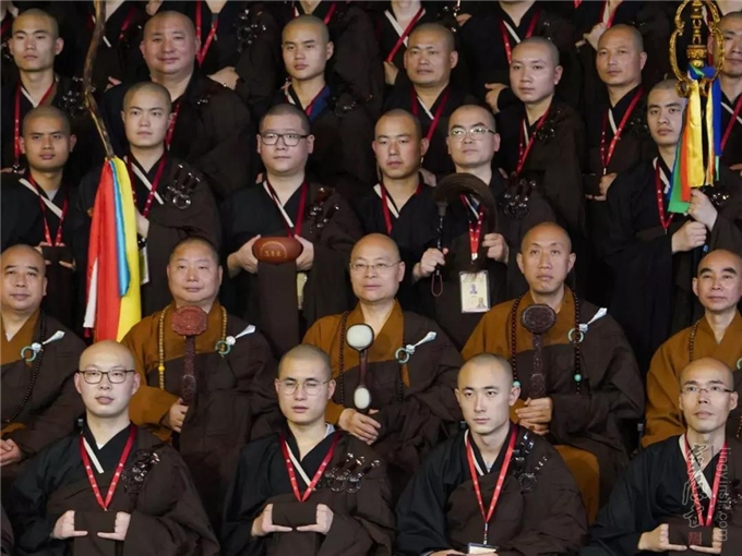 另外一件事情便是在正授菩萨戒之后,戒场全体大合影的时候。合影时,我手执拂尘站在戒和尚灵隐寺方丈上光下泉大和尚的身后。