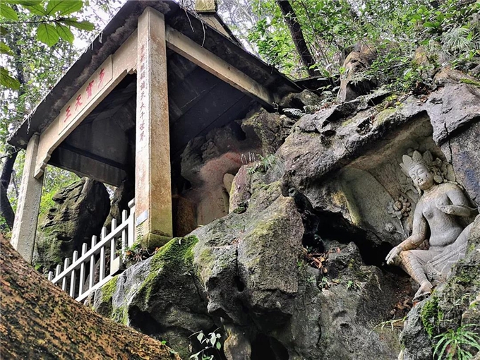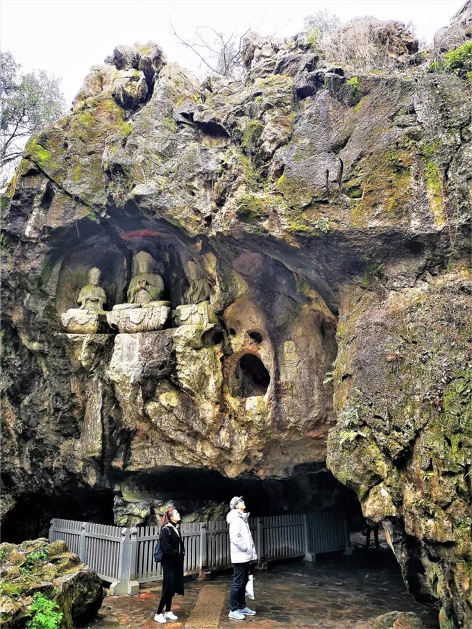 我和小伙伴跟着游客,穿梭在飞来峰的石窟中。顺着那拿着小旗子导游的手,眯着眼找一线天神秘的亮光。