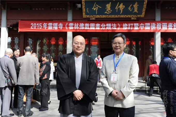 ▲就在"《云林图书分类法》修订暨中国佛教图书馆管理研讨会"报到之日,我(作者宋雷、左一)便与灵隐寺云林图书馆馆长文海法师(右一)合影,他是此次研讨会第一位与我接洽的法师。早在我写作论文的过程中,文海法师就认真负责地给我寄上了旧版《云林图书分类法》等资料供参考,报到时又亲自接待,安排食宿与会务。文海法师在图书馆既当馆长,又当管理员,讷于言而敏于行,无愧是僧人的典范。(拍摄时间:2015年3月25日)