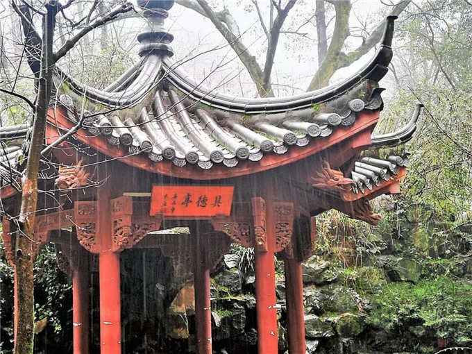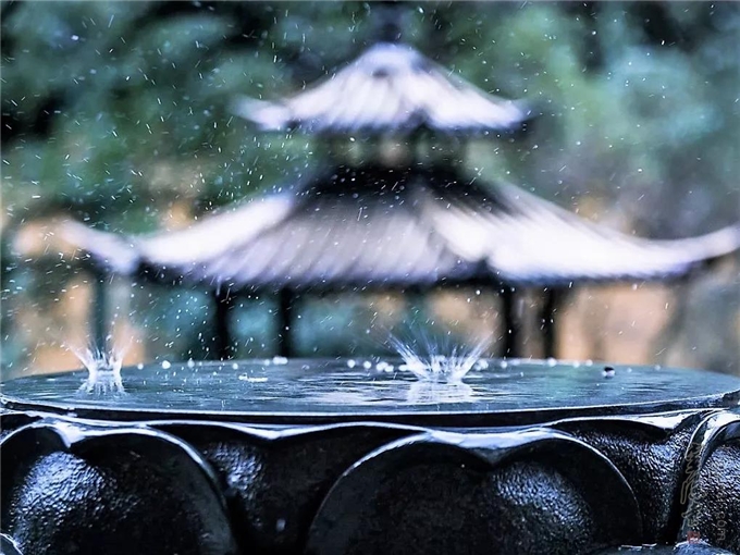 清雨旋落在这千年古庙的青白石板上,或轻轻地打在竹叶上、树叶上、檐梁上,是那样的悠远,缥缈……