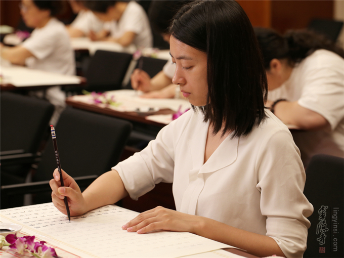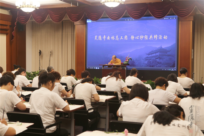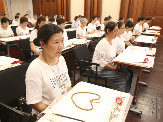 8月18日,农历七月初八,云林志工团2018年首次静心抄经共修在灵隐寺华严阁4楼如期举行,50多位志工欢喜参加。