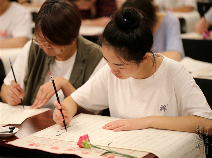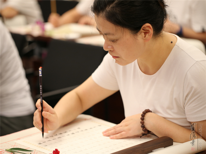 抄经前,法师引领大家一起读诵《心经》,然后,在一笔一捺中,大家通过笔与纸的接触、心与手的协调,由身动至心静,参加本次抄经共修的志工们全程止语、屏息诸念,无不欢喜自在。写经是一次涤荡心灵的过程,能够体会到极寂静、详密思惟之定慧状态,亦有寂静禅定的喜悦。中国禅宗的祖师早就指出,行住坐卧皆能入定、语默动静无不是禅。