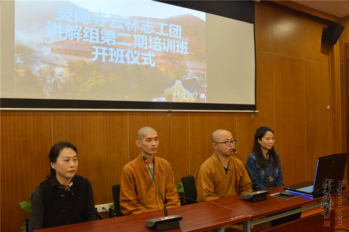 2018年10月20日"杭州灵隐寺云林志工团讲解组第二期培训班"开班仪式在灵隐寺华严阁举行。来自各地近60名学员齐聚一堂,开启为期3个月的讲解员培训学习。灵隐寺见闻法师和能量法师出席仪式给予指导。