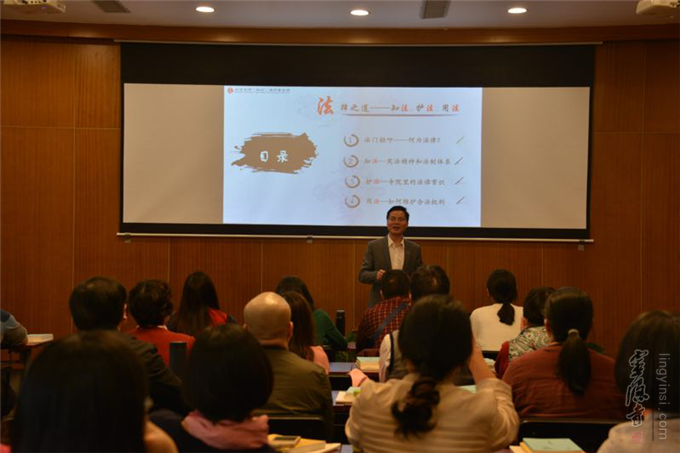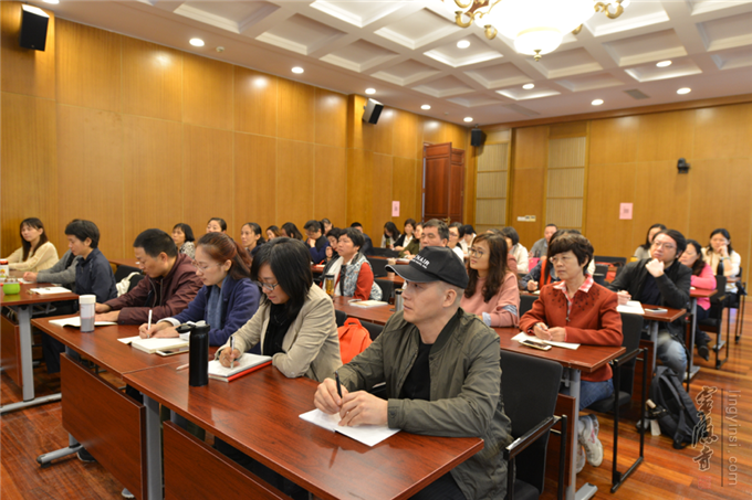 下午是第二堂培训课,李秋华老师从"西天佛缘"、"梵音东来"、"灵隐春秋"和"鸟瞰伽蓝"等四个方面入手,详细介绍了灵隐寺的前世今生。