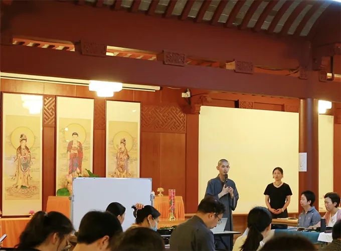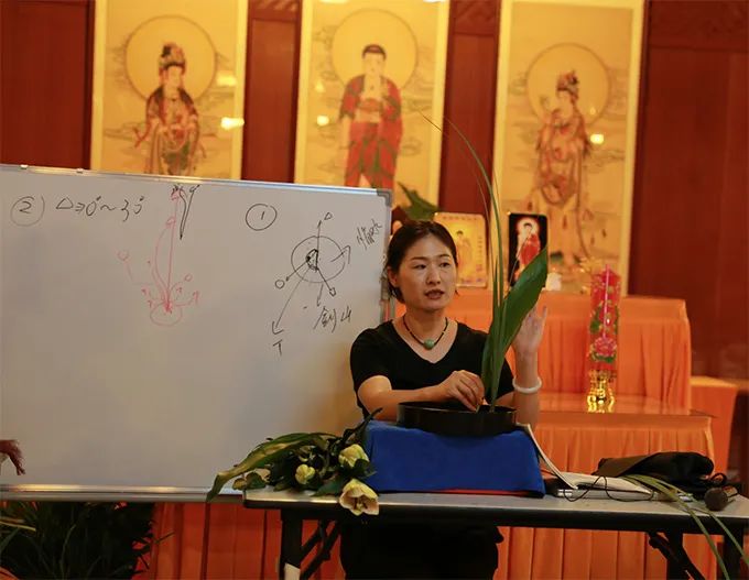 花道组陈燕芳老师对学员表达了鼓励与展望。她说,花道组培训的课程内容丰富,节奏较快。希望大家珍惜灵隐寺殊胜的学习环境,在课堂中集中注意力,尽快全面掌握,学以致用,服务三宝。