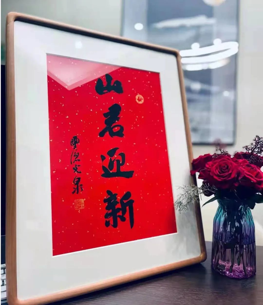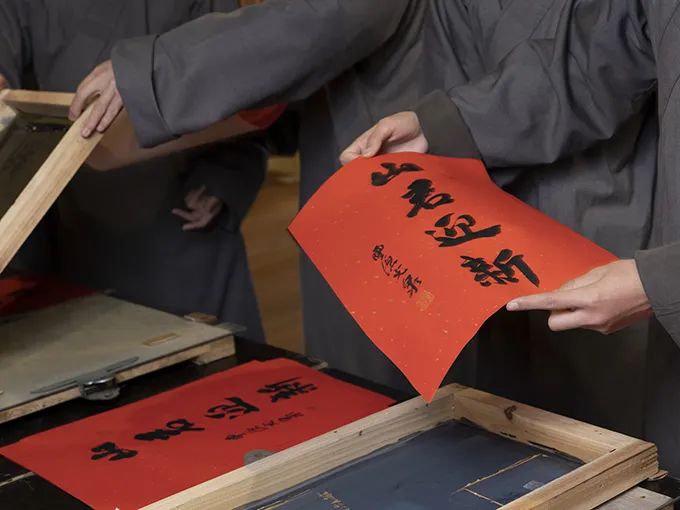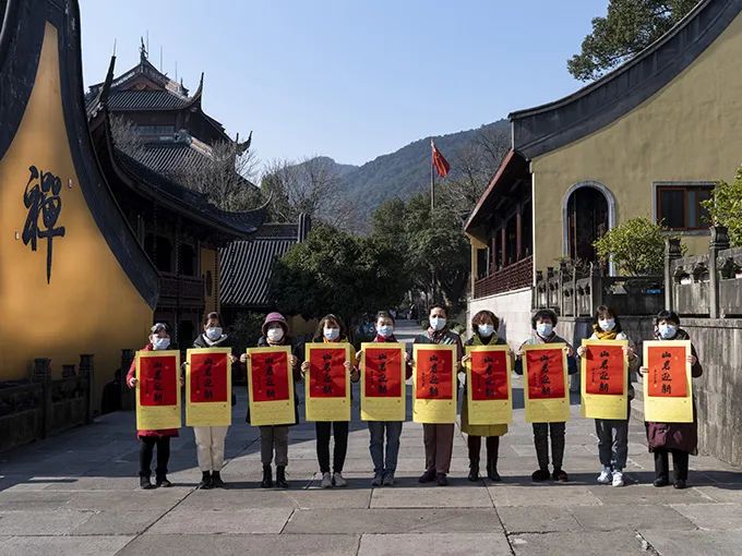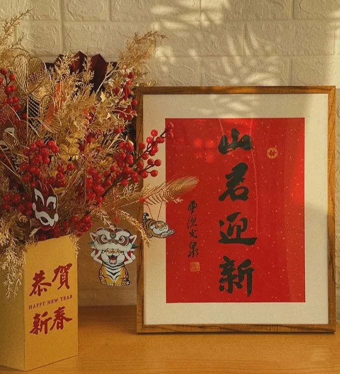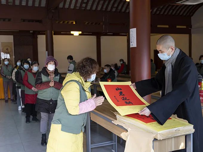 飘金的万年红宣纸上印着灵隐寺光泉大和尚慈悲挥就的“山君迎新”四字墨宝,通过这份充满传统文化意味的新年礼物,让三宝与大众结缘,也让我们体会到了佛教的慈悲与包容。