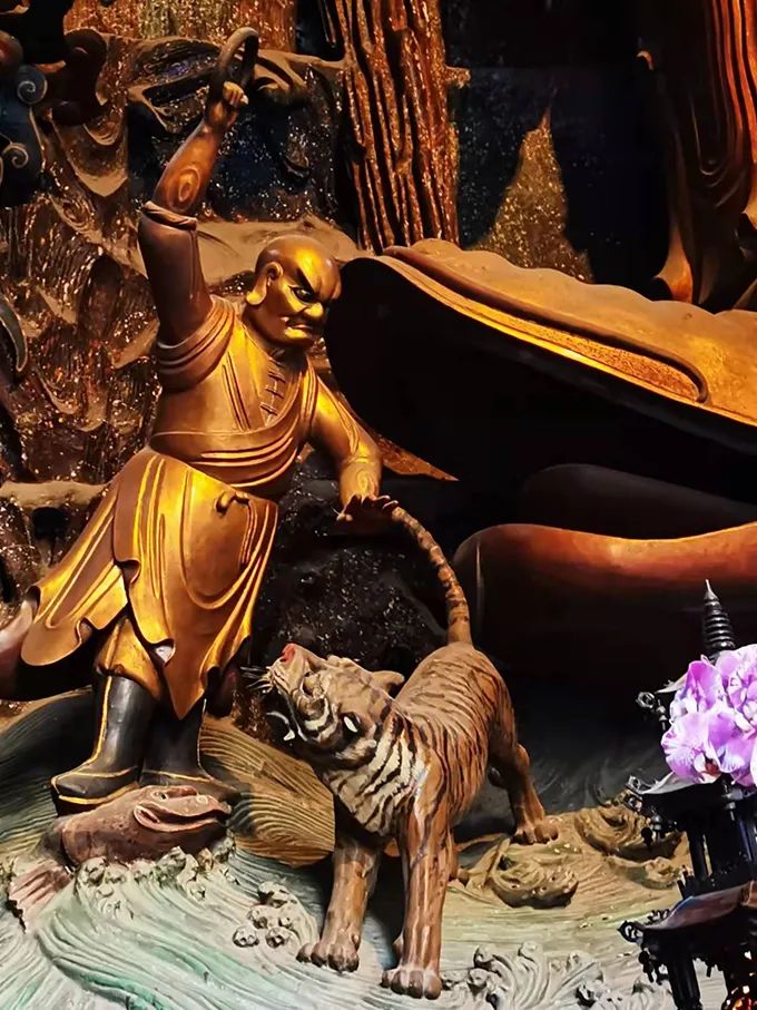 从2012年起,每年光泉大和尚都会以当年生肖为主题,题写新年祈福年历;2022年即将迎来中国农历壬寅年,“山君”就是大山之中的万兽之王——“老虎”。虎和佛门渊源颇深,佛教典籍中有许多关于虎的典故流传。