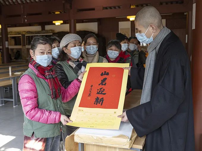 不仅是灵隐寺的志工与居士,杭城的市民乃至全国的有缘朋友们都可以通过众多的渠道申请到这份祈福年历。每年的十二月中旬开始,杭城的各大媒体都会发布年历的免费结缘方式,云林书院也会适时开通淘宝线上结缘,这让我深深体会到了佛门以“平等心”对待众生。我与家人们怀着对三宝的感恩之心,将祈福年历精心装裱,将这份对新年美好的祈盼挂在客厅,装点着温暖的家。