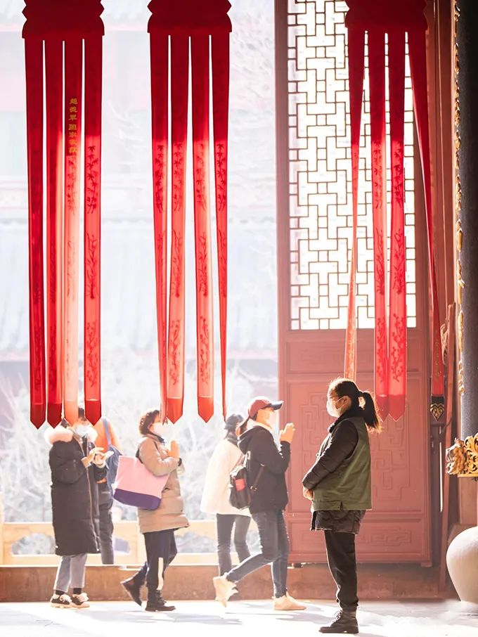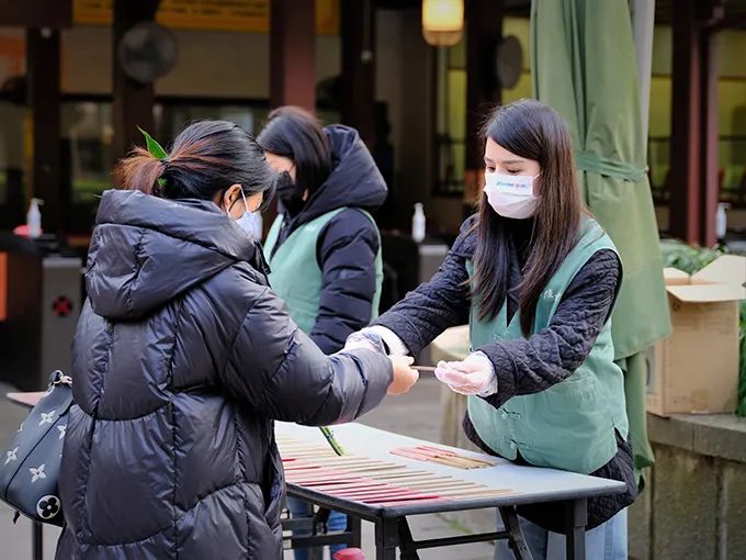 因为这份快乐、欢喜,我渐渐融入这里,把这里当作自己的精神家园,发心精进护持这座古刹。之后的每个周六我都会报名参加志工服务,从售票到检票,从引导到晒经,每次参加不同岗位工作的我都乐此不疲。无论刮风下雨,无论冬寒暑热,我与师兄们都从未感到过辛劳,于我而言,那是身体与精神的双重享受。