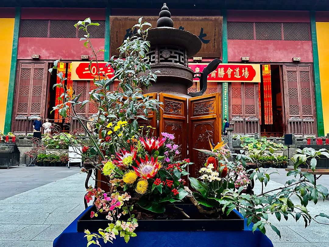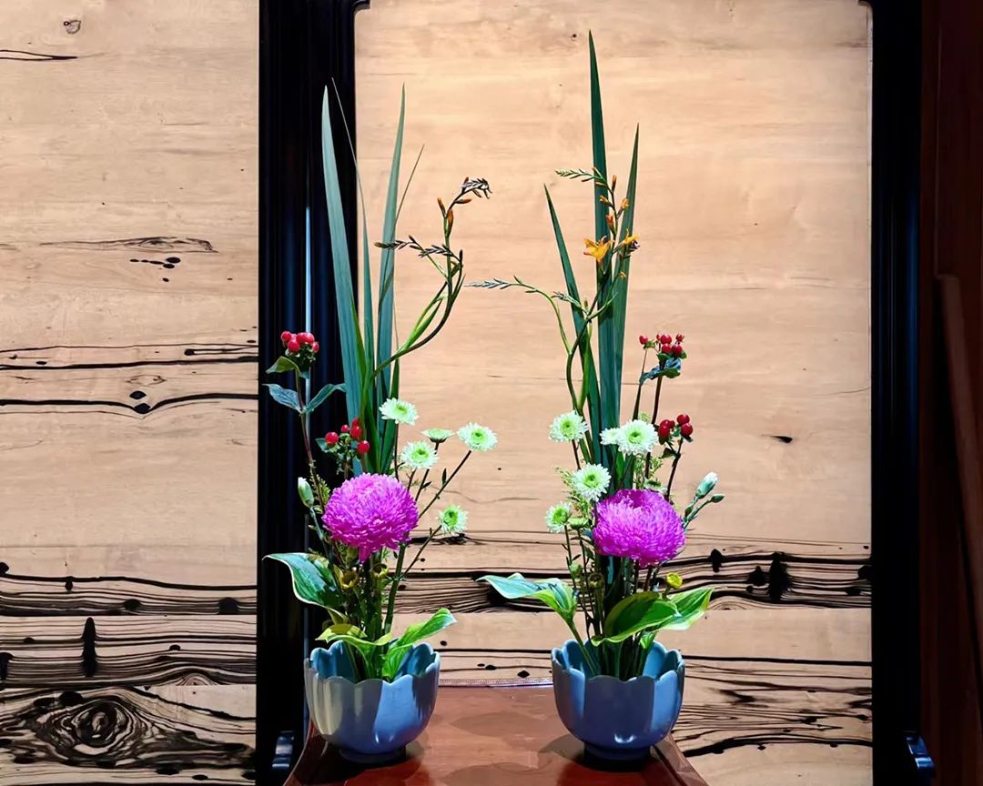 花的⾃然形态可以渲染禅意的空间氛围,禅的⽣命枯荣能捕捉⾃然的真实瞬间,今日是灵隐寺秋季茶会的第一天,我们花道组全力以赴,在老师的带领下一起协作完成此次插花任务!