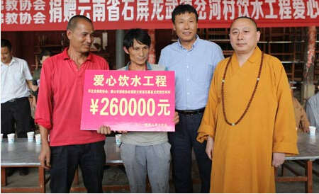 了解到云南的旱情后,中国佛教协会,中国佛教协会慈善公益委员会,河北省佛教协会,唐山市佛教协会积极筹措资金,在佛教界发起了"为乡亲们捐一瓶水"的活动,为此项人畜饮水工程筹措26万元资金,在水源地修建了三座蓄水池,基本解决了当地村民饮水问题。