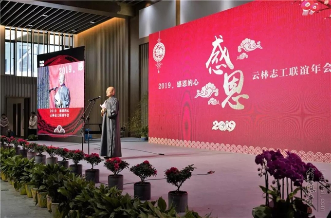 一元复始,万象更新。值此己亥新年即将到来之际,杭州灵隐寺隆重举行"云林志工团联谊会",可谓因缘殊胜!在此,我谨代表杭州灵隐寺两序大众,向多年来支持和发心护持佛法的十方信善、檀越大德以及云林志工团的志工菩萨们致以最诚挚的新春问候和最崇高的敬意!