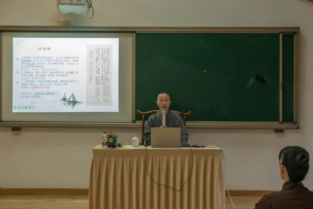 继道法师先后以《佛教基本常识》和《心经浅释》为题,向大家介绍了佛教的基础理论和大乘佛法缘起性空的核心要义。
