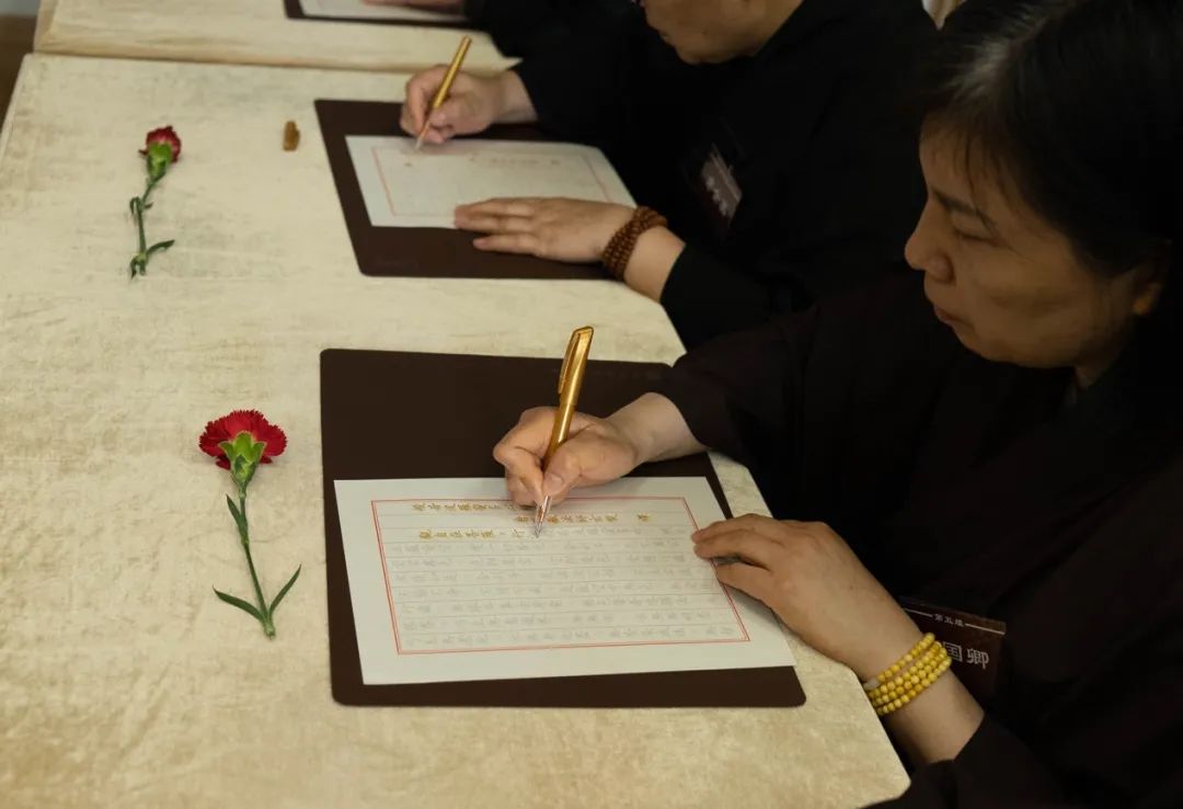 在体验寺院晨钟暮鼓、学习佛门礼仪规矩的同时,此次回堂灵隐寺为学员们安排了听经闻法、受持八关斋戒、诵经、抄经、放生等修学活动。