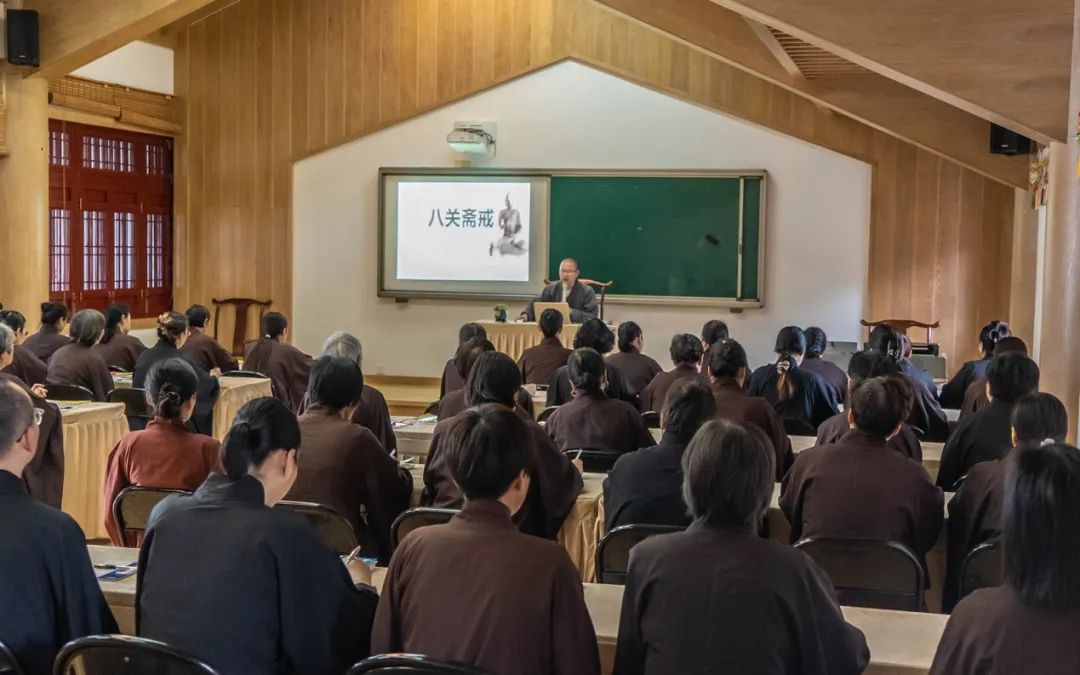 25日下午,相莲法师详细讲述了八关斋戒的戒条内容、制戒用意和受持的注意事项,耐心回答了大家的提问,并于当晚带领学员至诚忏摩,清净身心,为次日受持八关斋戒预作准备。