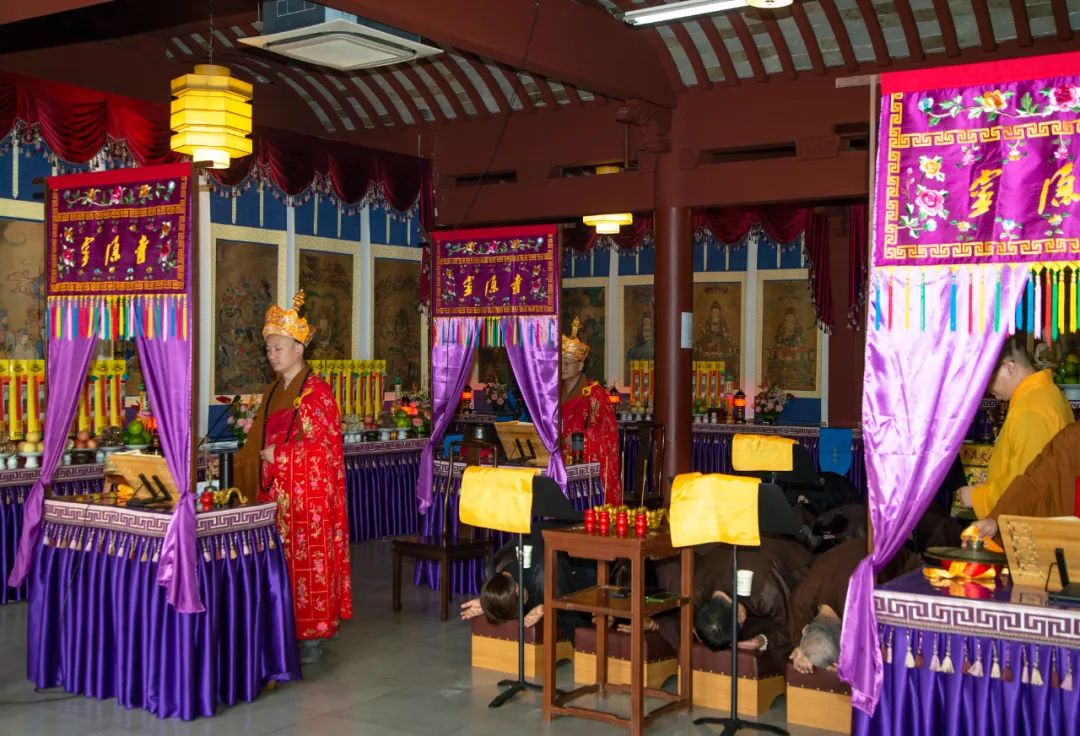 水陆法会是汉传佛教中最盛大隆重的法会,起源于南北朝时的梁武帝。经唐代发展,直至宋、元、明成熟,一直流传至今。法会上供十方诸佛圣贤,下济六道苦恼众生,广设坛场,慈悲普度,分为内坛和外坛,其中内坛于第三日凌晨完成结界并起用。外坛分为六个坛场: