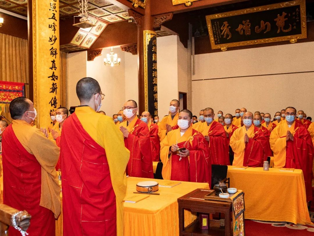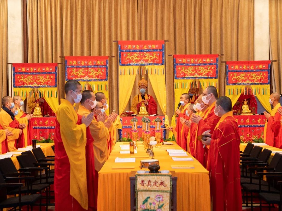 随后,五位金刚上师手指结印、口诵真言、意存观想,加持坛场内种种饮食,以清净甘露法味施予饿鬼道众生,令它们得蒙佛力加持,出离有期。瑜伽焰口法会庄严肃穆,法器和鸣,至晚上10时左右圆满。