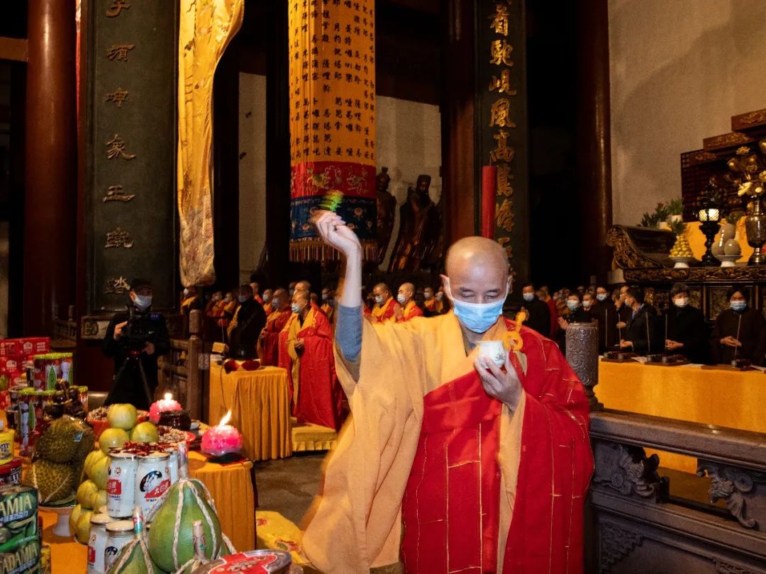 杭州灵隐寺于2021年10月18日—24日(农历九月十三至九月十九)启建辛丑法界圣凡水陆普度大斋胜会,阖寺法师虔诚恭敬地举行诵经、礼忏、持名、请圣、斋天、放生、施放瑜伽焰口、普佛、说幽冥戒、送圣等法事活动,祈愿诸佛菩萨、护法龙天慈悲加持,超度古往今来水陆空一切有情众生,