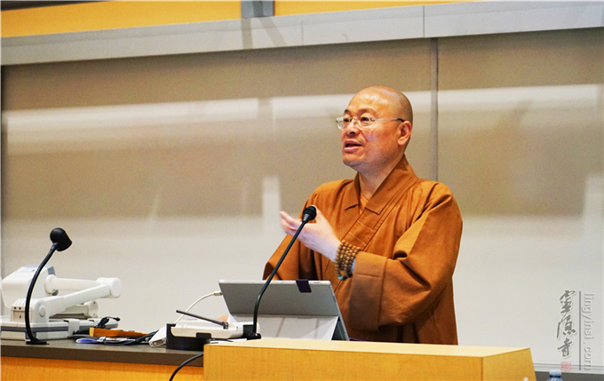 演讲中,光泉法师表示中国佛教,拥有内容丰富、绚丽多彩的文化遗产,在人类文化发展史上具有不容忽视的影响。同时通过慧理、永明延寿、济公和太虚等高僧大德的故事介绍佛教中国化的历程,讲解西方社会对佛教的有益探索,以及佛教与科学的对话,并积极倡导佛教的慈悲、感恩、包容的禅意生活,他还强调佛教是世界性的宗教,中国佛教的影响力正在日益彰显,期待通过推动中国佛教走向世界,为世界人民贡献佛教的智慧和力量。最后,光泉法师还与现场嘉宾进行互动。