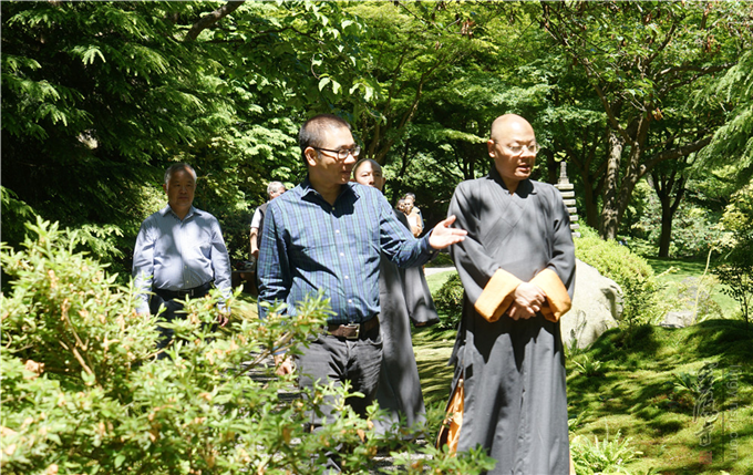 光泉法师在陈金华教授的陪同下参观新渡户纪念花园
