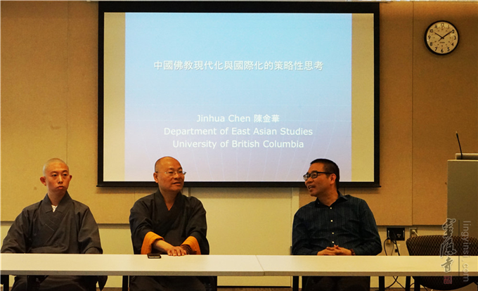 6月23日上午,光泉法师一行在UBC东亚佛学教授、UBC佛学论坛主任、SSHRC《佛教与东亚宗教》国际合作项目主任陈金华教授的陪同下,参观了UBC亚洲图书馆、亚洲研究学系和新渡户纪念花园等。随后与其在UBC亚洲研究院进行了座谈交流。