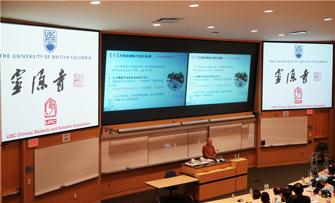 当地时间6月25日下午2时(北京时间凌晨5时),光泉法师在UBC大学The lrving K.Barber图书馆作《佛教国际化——佛教传播与东西方文化交流互鉴》的主题演讲,全场座无虚席。中国驻温哥华总领事副总领事孔玮玮先生、中国驻温哥华总领事馆文化领事蔡洁女士等近200人出席活动。