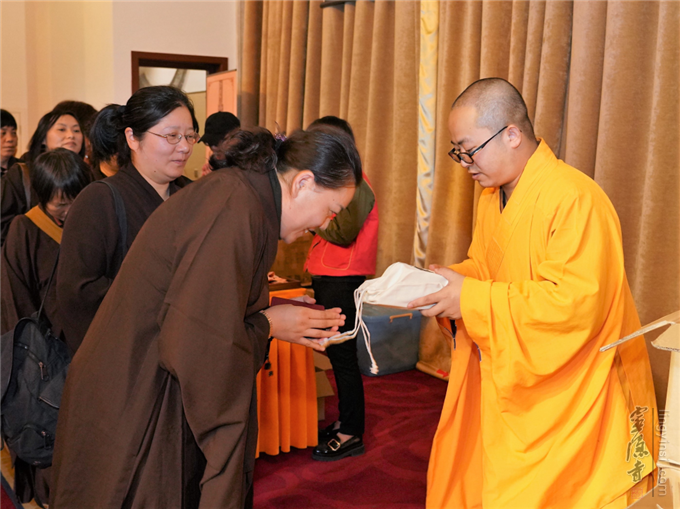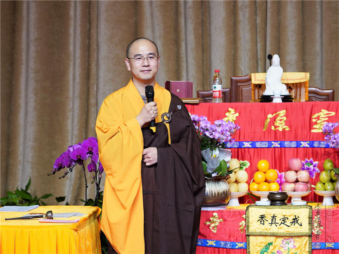 上午九时,心印法师以《皈依三宝是学佛的开始》为题,为信众讲授皈依三宝的目的、何为三宝、三宝之所以为"宝"的六层含义和皈依功德等法要。