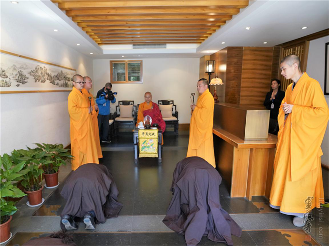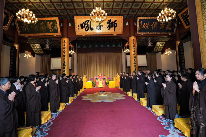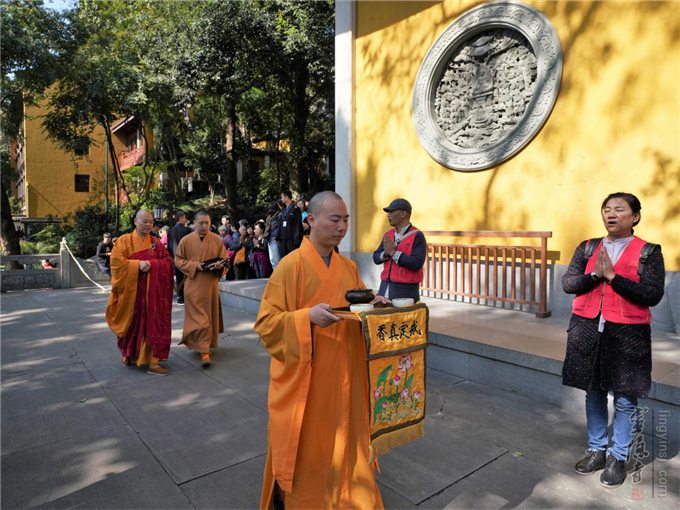 2018年10月27日(农历九月十九),欣逢观音菩萨出家日,杭州灵隐寺于直指堂隆重举行传授三皈依法会。受十方善信的启请,法会礼请杭州灵隐寺方丈光泉大和尚为众传授三皈依。有来自全国各地的信众心怀虔诚欢喜参加,至诚皈命三宝,正式成为佛弟子。