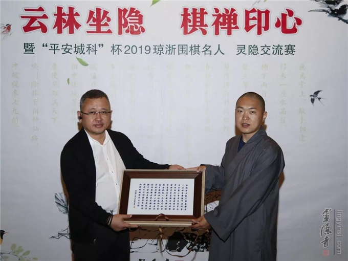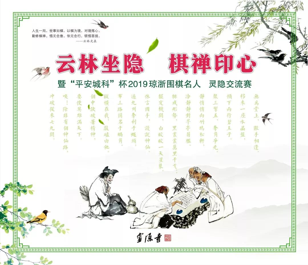 春风和煦,姹紫嫣红。2019年4月9日,"云林坐隐,棋禅印心"暨"平安城科"杯2019琼浙围棋名人交流赛在杭州灵隐寺举行。来自海南省的围棋棋手和围棋爱好者与杭州佛教围棋文化交流中心的法师和棋手相聚千年古刹,共同探究围棋文化所蕴含的禅味和人生哲理。职业棋手毛昱衡(职业初段)、张越然(职业二段)、业余围棋世界冠军付力(业余八段)以及围棋爱好者50多人参加此次棋赛。
