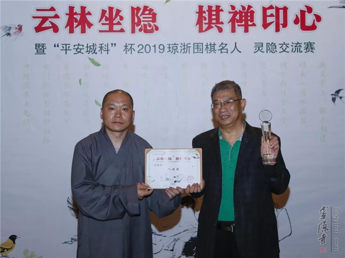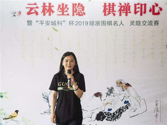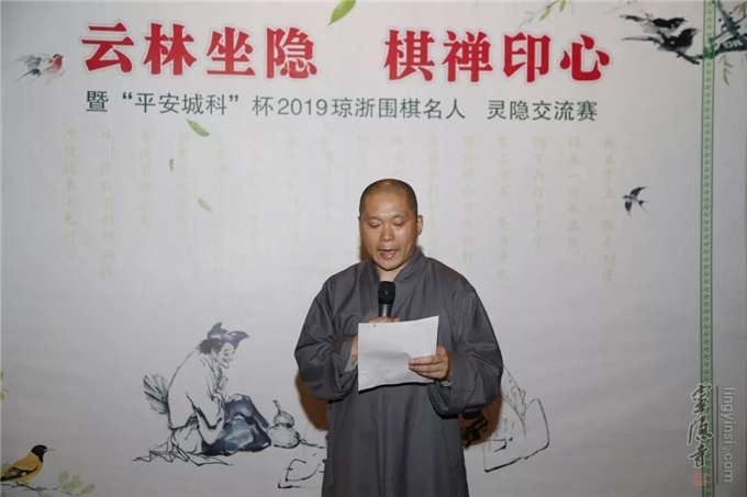 杭州佛教围棋文化交流中心执行教练毛昱衡介绍了赛事规则,宣布"平安城科"杯2019琼浙围棋名人灵隐交流赛开赛。