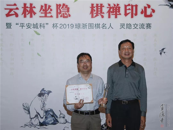 海南省法学会会长肖若海出席闭幕式,宣布"平安城科"杯2019琼浙围棋名人灵隐交流赛圆满结束。
