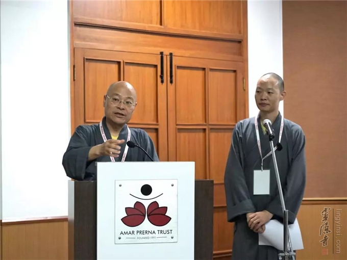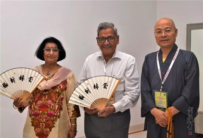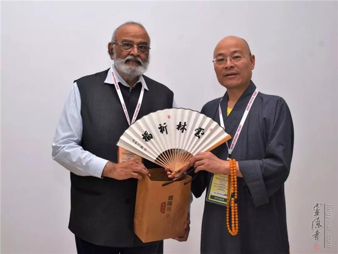 ▲光泉法师向会议赞助方Shri Firodia信托公司
