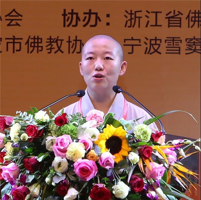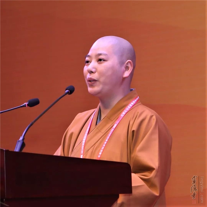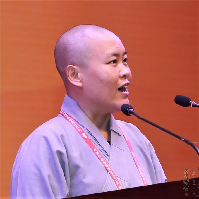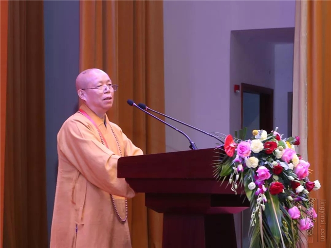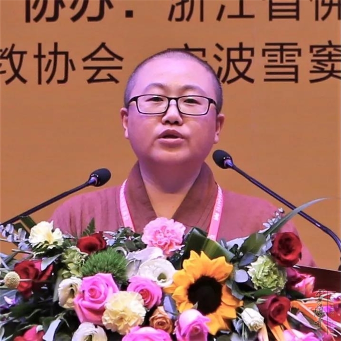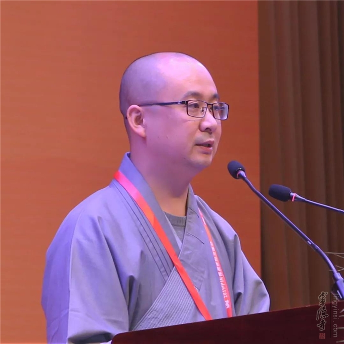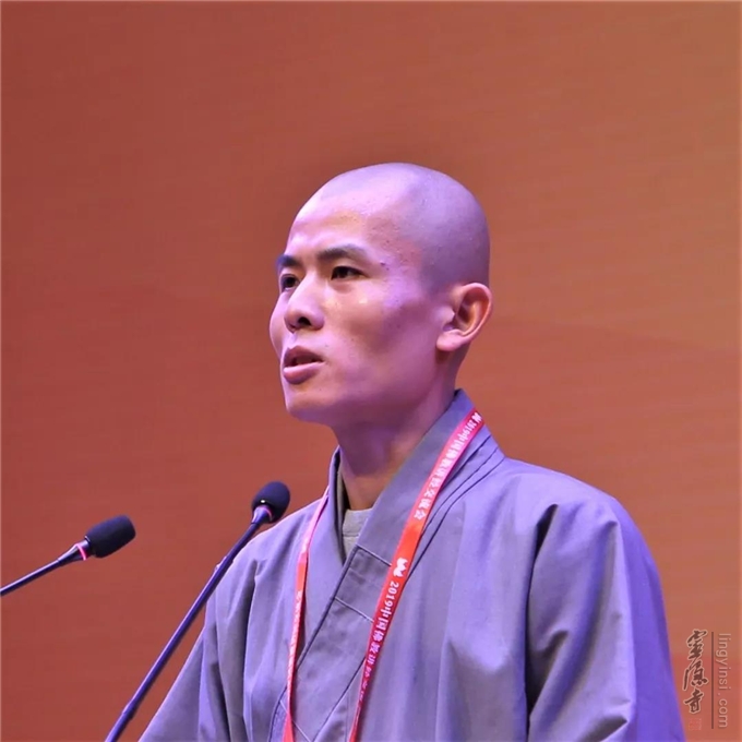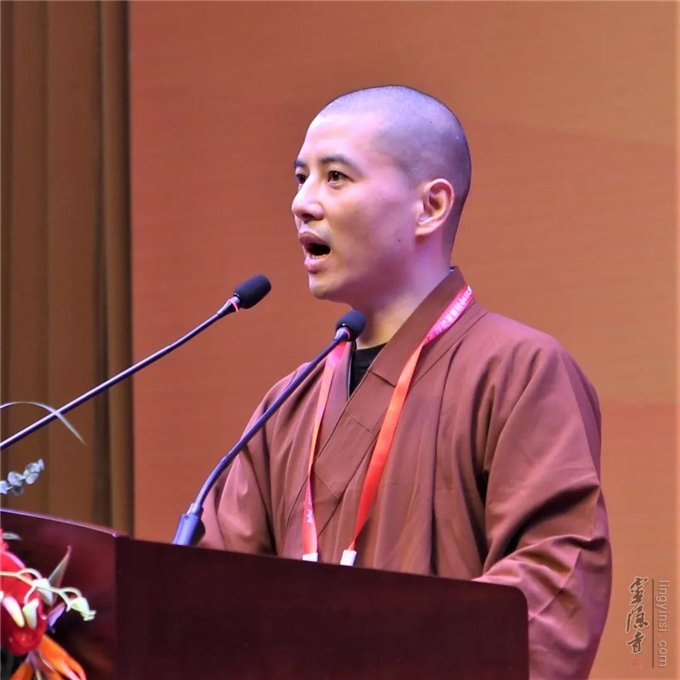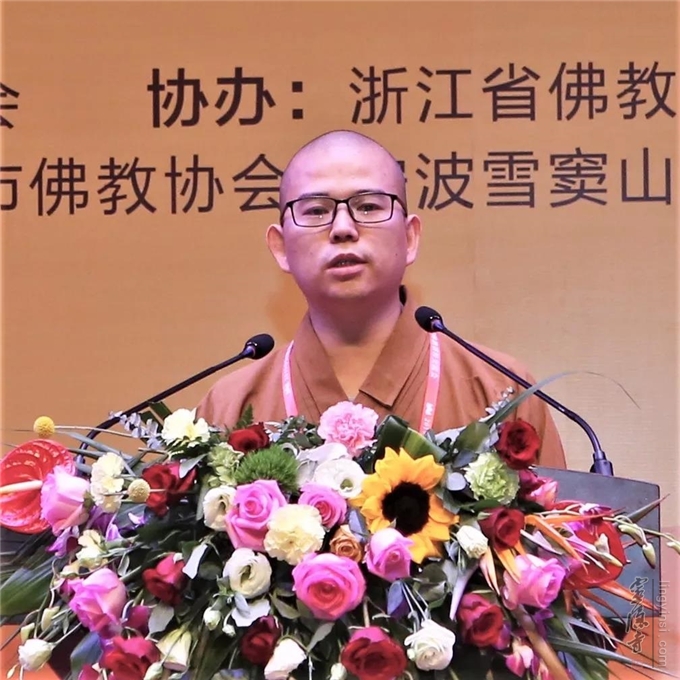 重庆市梁平区双桂堂监院克一法师的演讲题目是《我在修行中无我》。他认为依教修学,需要身体力行,持戒而修,修中有我,行中无我,忘我而行,学以致用。"不为生而生,不为死而死",上报四重恩(父母恩、众生恩、国土恩、三宝恩),下济三涂苦,不忘初心,才是真正的依教修学。