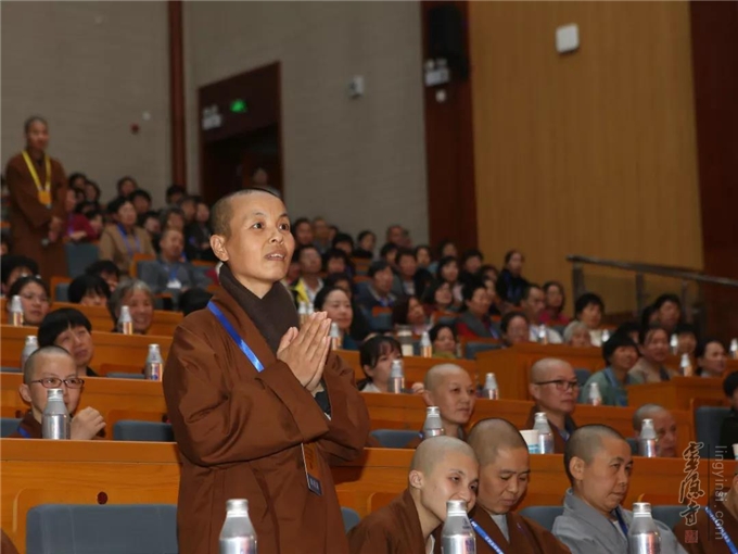 法师讲经,时而娓娓道来,妙语如珠,时而慷慨激昂,自信满满。讲经现场气氛活跃,不时爆发出阵阵掌声。现场听经的法师和居士们更是就自己感兴趣的问题,向讲经法师们提问,现场气氛活跃。