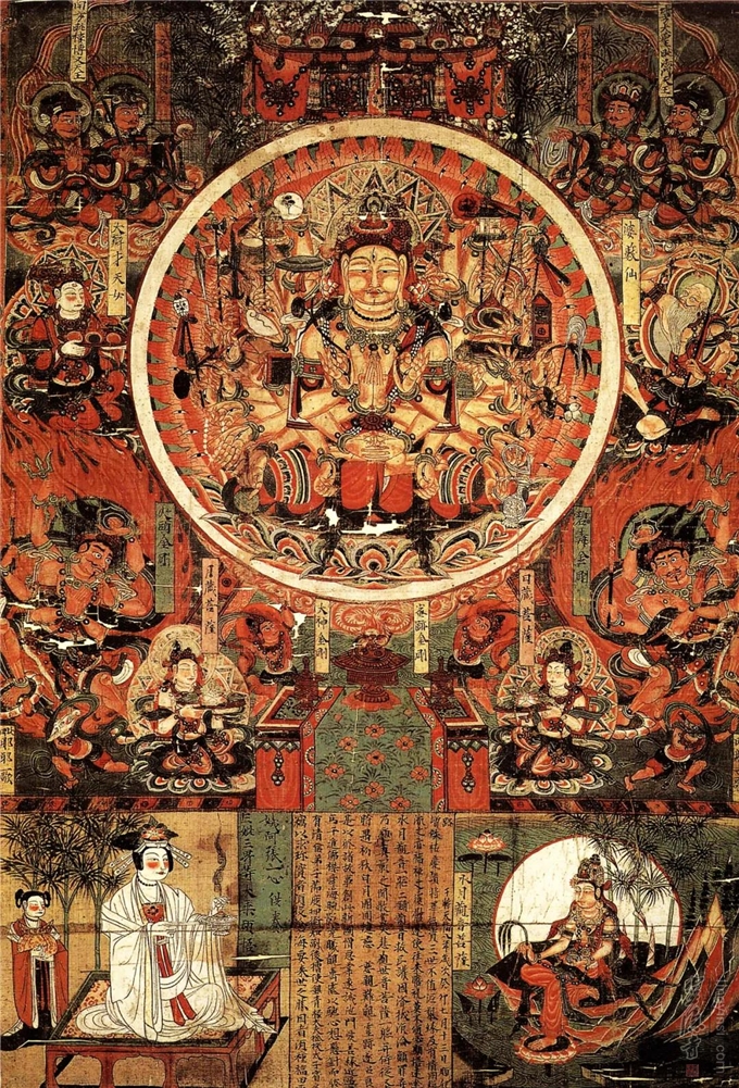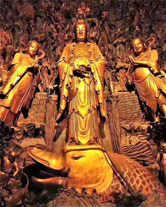 《观世音菩萨普门品》曰:"无尽意,是观世音菩萨,成就如是功德,以种种形,游诸国土,度脱众生。是故汝等,应当一心供养观世音菩萨。"即是说,观音菩萨功德广大,常常幻化成各种面目示人,遍及世界各地,度化众生,使其脱离苦海。