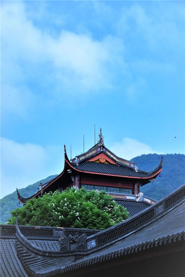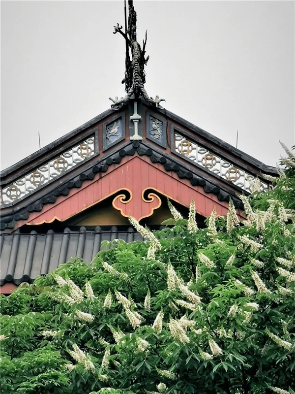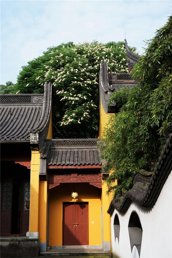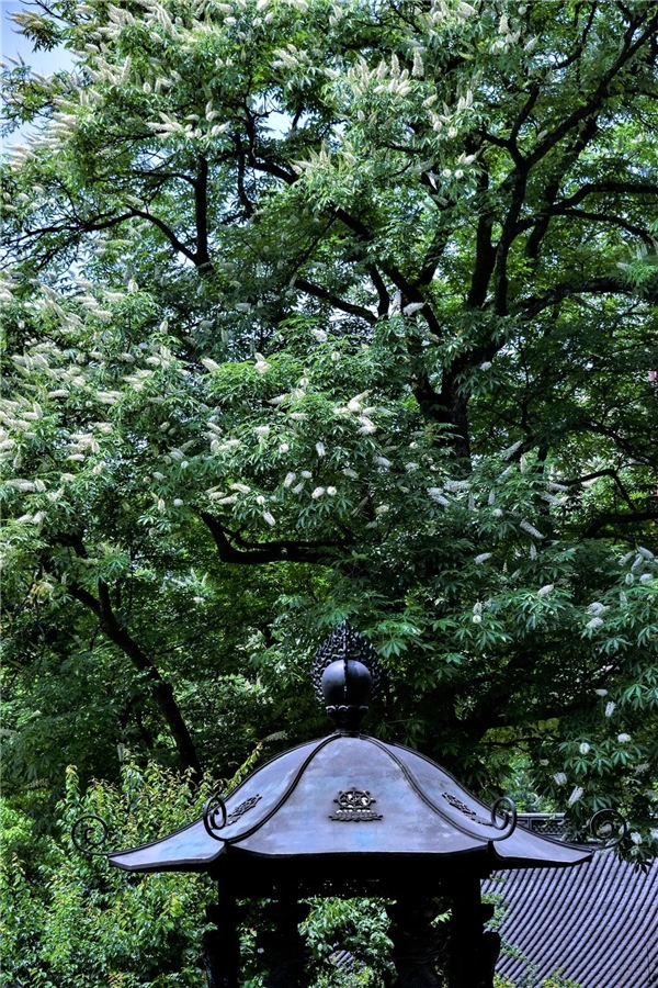 这几天,杭州灵隐寺娑罗树花开正盛。每年农历四月初八佛诞日开始,杭州灵隐寺的 200 多株娑罗树渐次开花。娑罗树冠圆大,枝繁叶茂,丛花满树,遮天蔽日,蔚然壮美,令人赞叹。