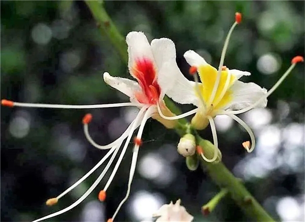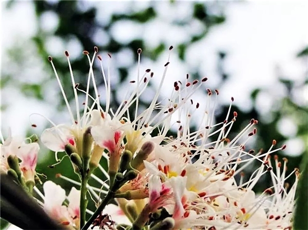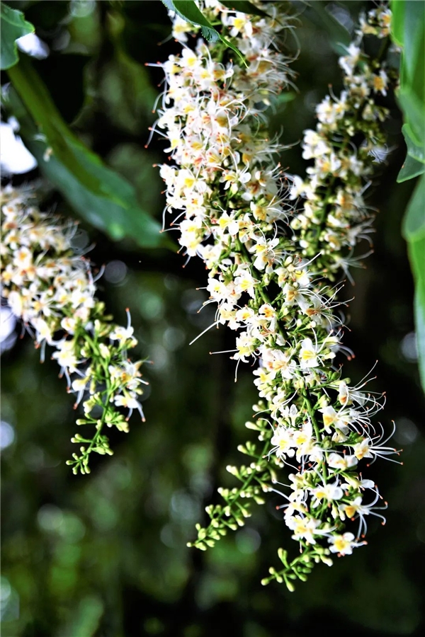 簇聚在花序上的娑罗树花很微小,开花时间只有一天,但开得俏丽,犹如三千年开一次的佛教圣花——优昙婆罗花。微风吹过,一朵朵娑罗圣树的花仙子随风飘落,漫天飞舞,恰似飞天散花。
