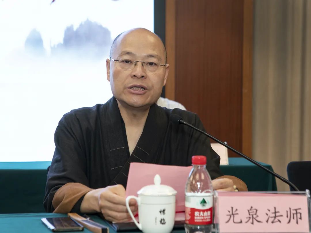▲浙江省佛教协会副会长、杭州灵隐寺方丈光泉法师致辞