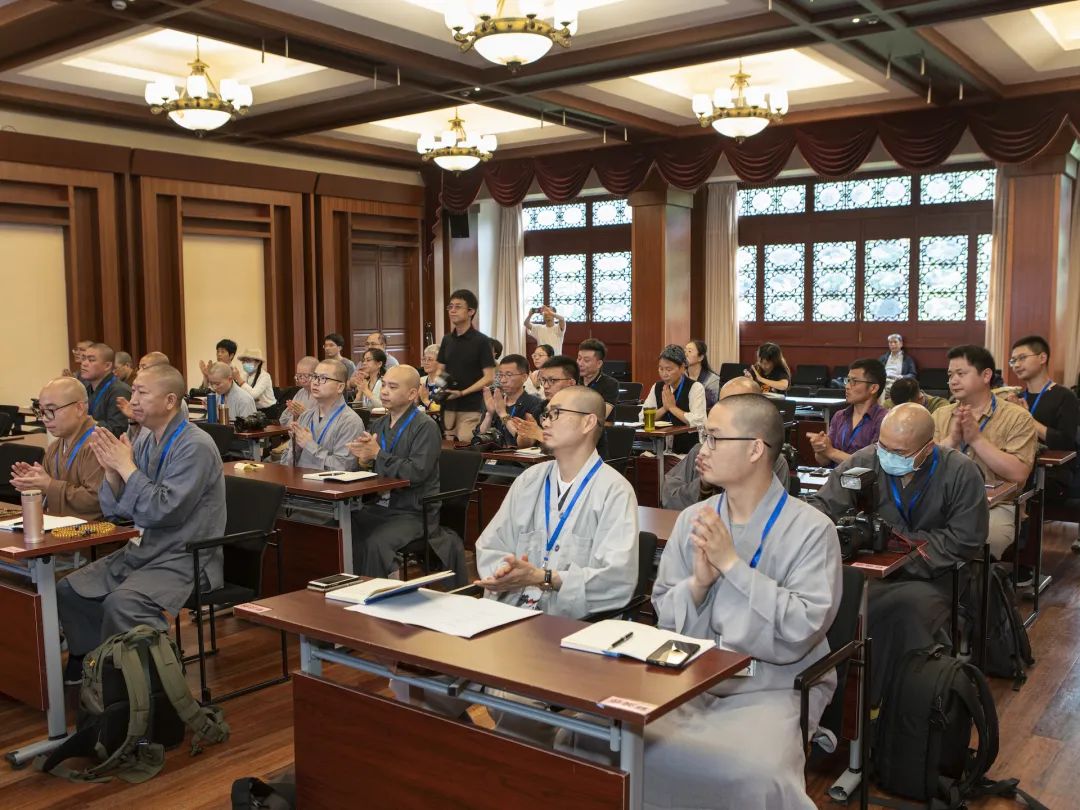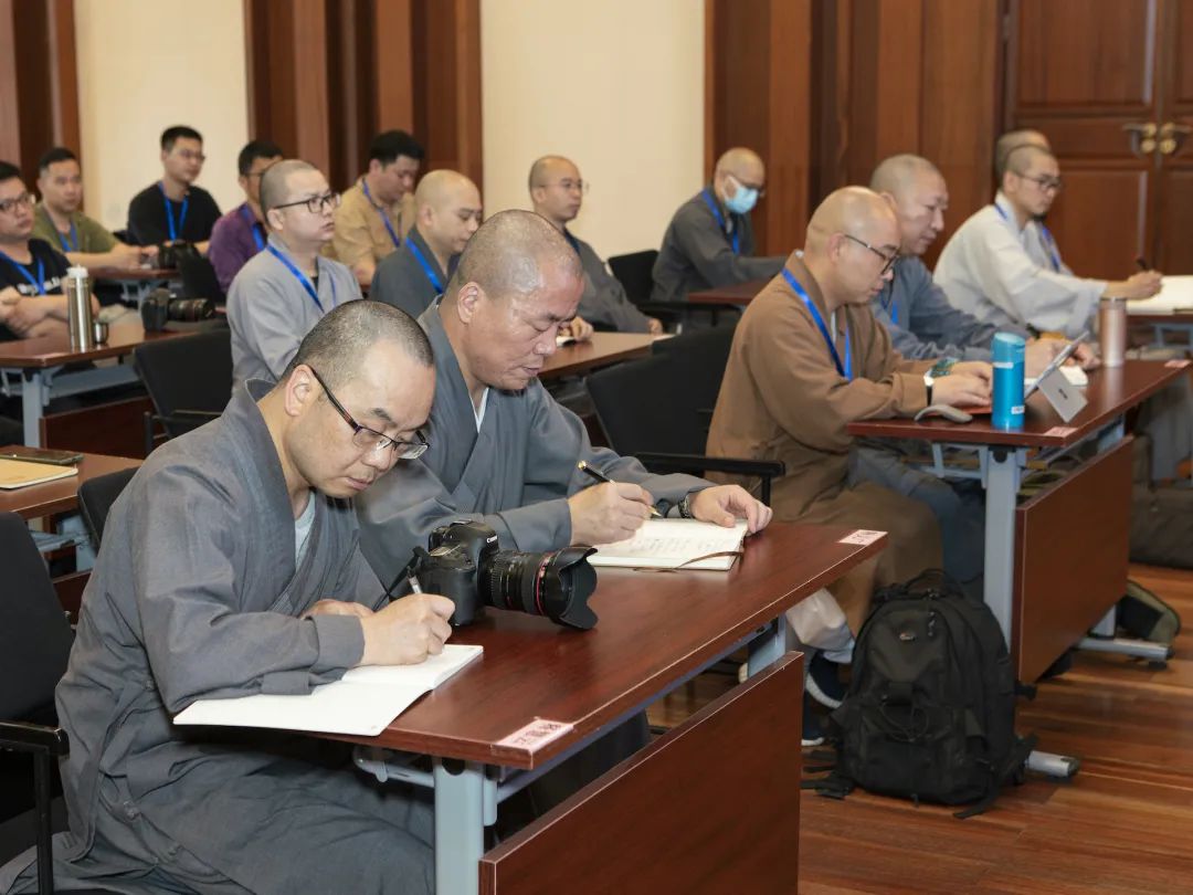 光泉法师代表承办方杭州灵隐寺致欢迎词。他表示,当代佛教应当契合时代因缘,赋予弘法方式新的时代气息。在科技高速发展的时代背景下,佛教弘法方式也逐渐通过现代语言文字、视频影音、图形图像、科技媒体等方式展现出来,为社会大众所接受。他寄语各位学员:要抓住机遇,使摄影技术成为当代弘扬正法的利器。同时,努力提升自己的专业技能,丰富自己的理论水平,更好地掌握摄影技术,真正实现“术”与“道”的融合,从而传达佛教文化的内涵。