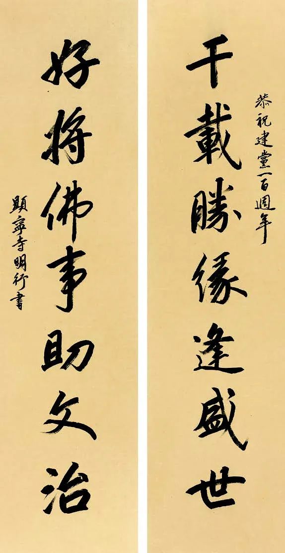 释明行 千载好将联 138cm×34cm×2