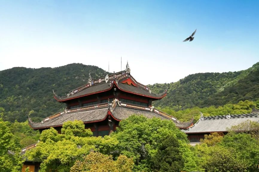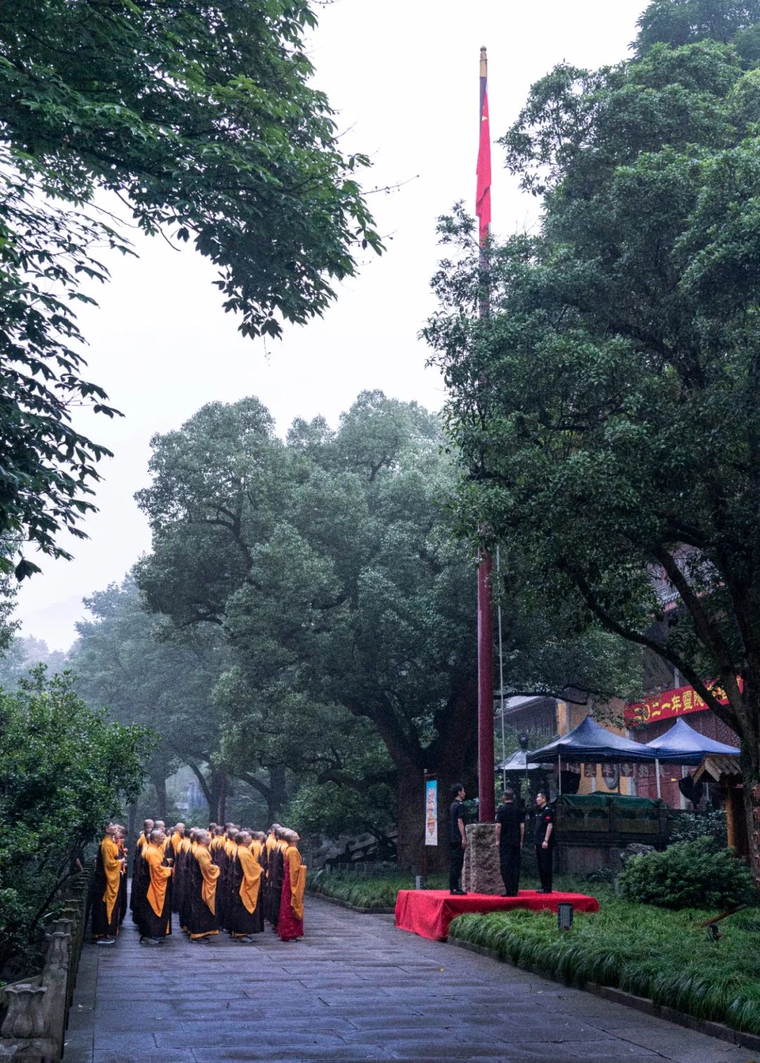 天竺山下禅林静,灵鹫峰前钟磬悠。2021年7月1日清晨,杭州灵隐寺举行庆祝中国共产党成立100周年升国旗仪式。